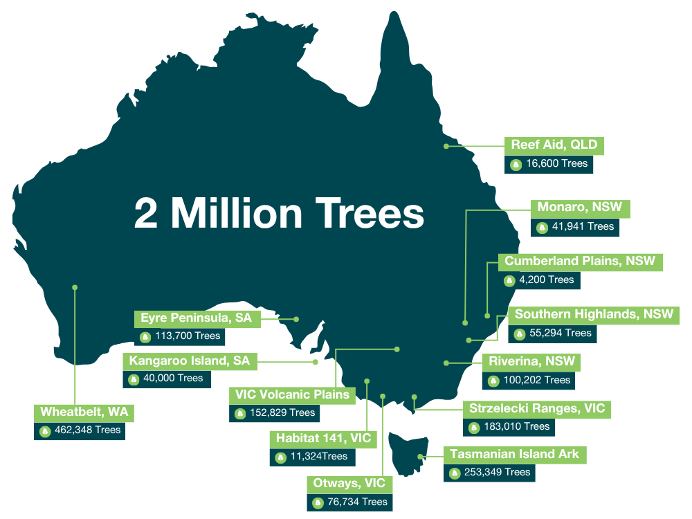 From 2017 to 2025, Officeworks and Greening Australia partnered to deliver Restoring Australia, an initiative that has planted 2 million trees across 2,664 hectares!